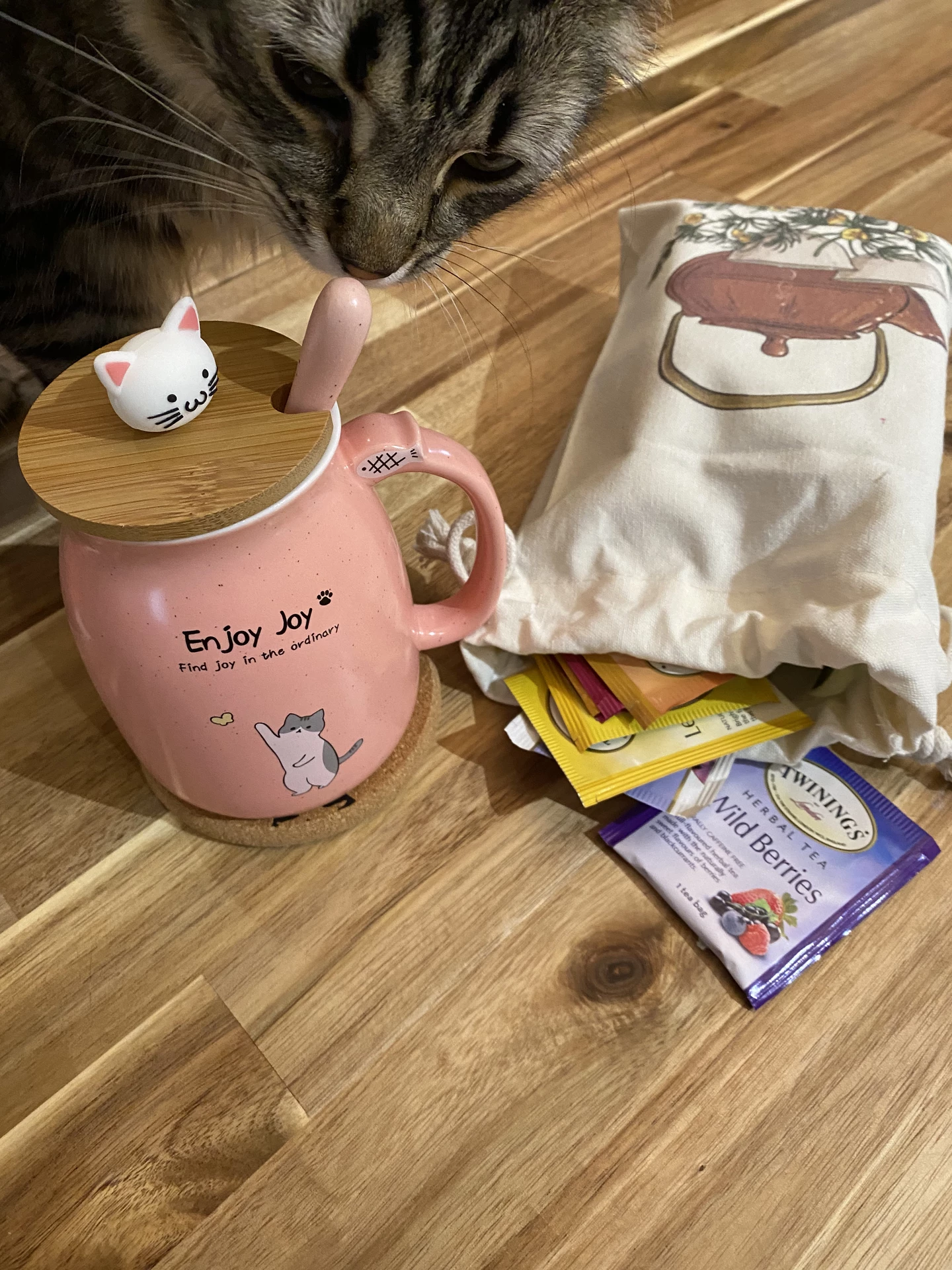 It was a lovely surprise to come home to this after a long day at work - an adorable cat mug, and a bag filled with caffeine free Twinings! I'm looking forward to trying them all, thank you gifter!