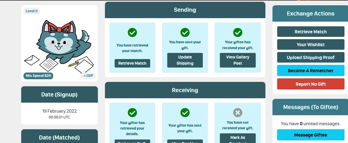 See which giftee's are in need of a gift.