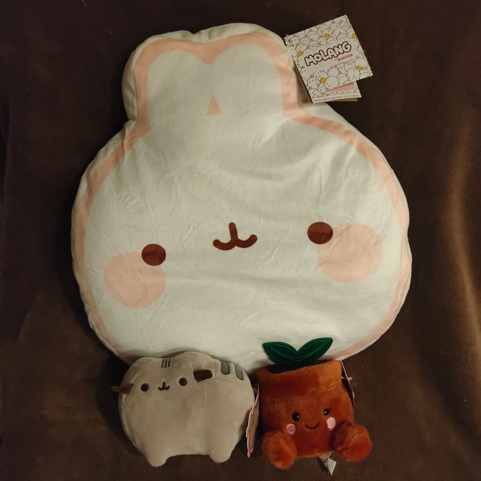 A Pusheen plush (I love Pusheen!), a potted plant plush (so cute and nothing like the other plushies I have), and a pillow like bunny. I love rabbits and pillow like plushies! They are all so soft and I definitely feel spoiled!