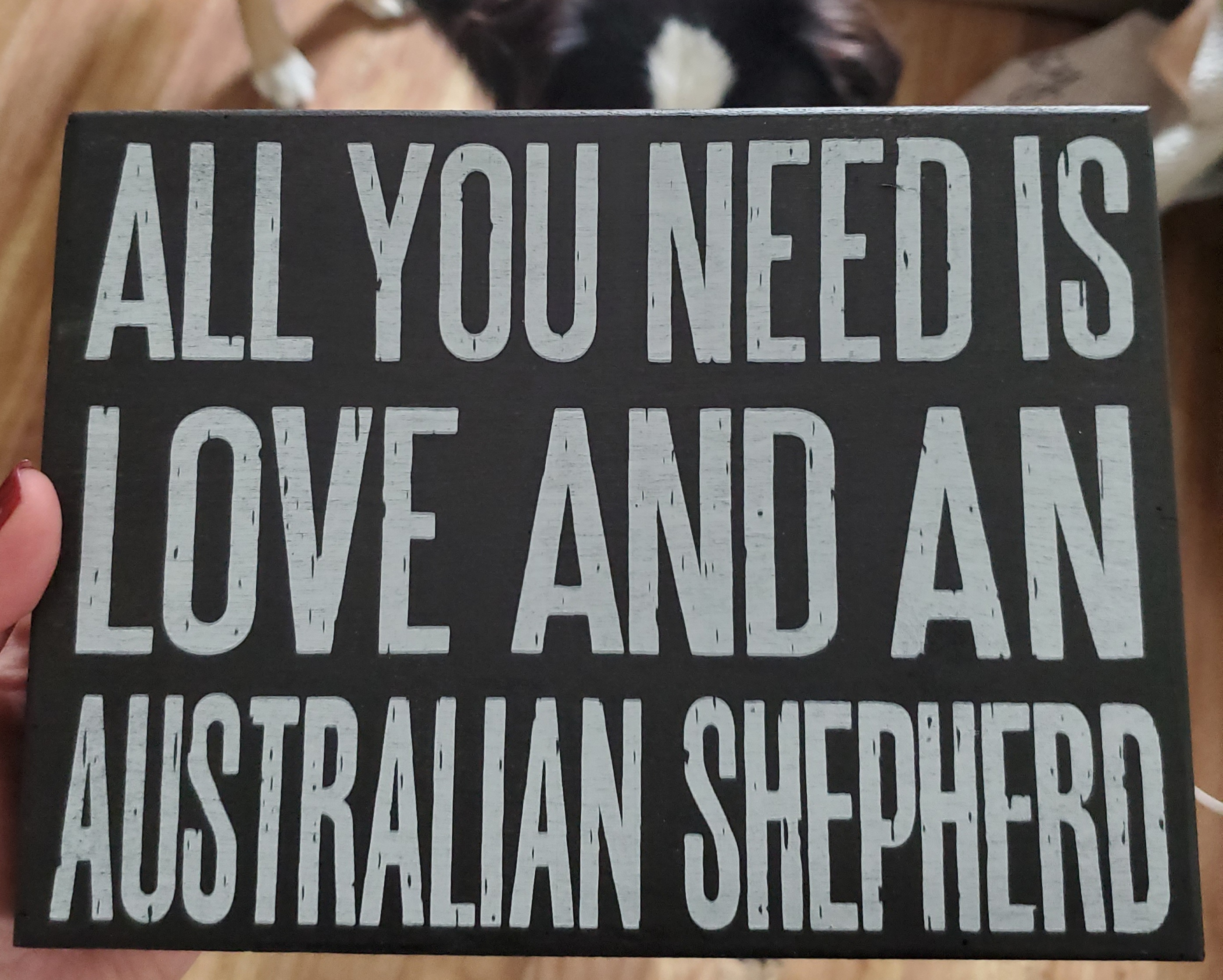 My awesome gifter got me an Australian Shepherd plush and sign! Thank you so much! It's perfect!