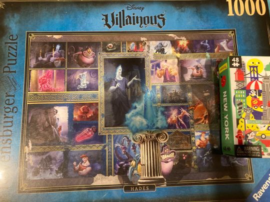 I received two fun looking puzzles. One is 1000 piece Ravensburger Disney villain Hades puzzle, and the other is a small 48 piece New York themed puzzle. Thank you, so much! I'm looking forward to working on these. Edited to say the NY puzzle is really cute. I especially like how one of the rats has a matching statue of liberty outfit on.