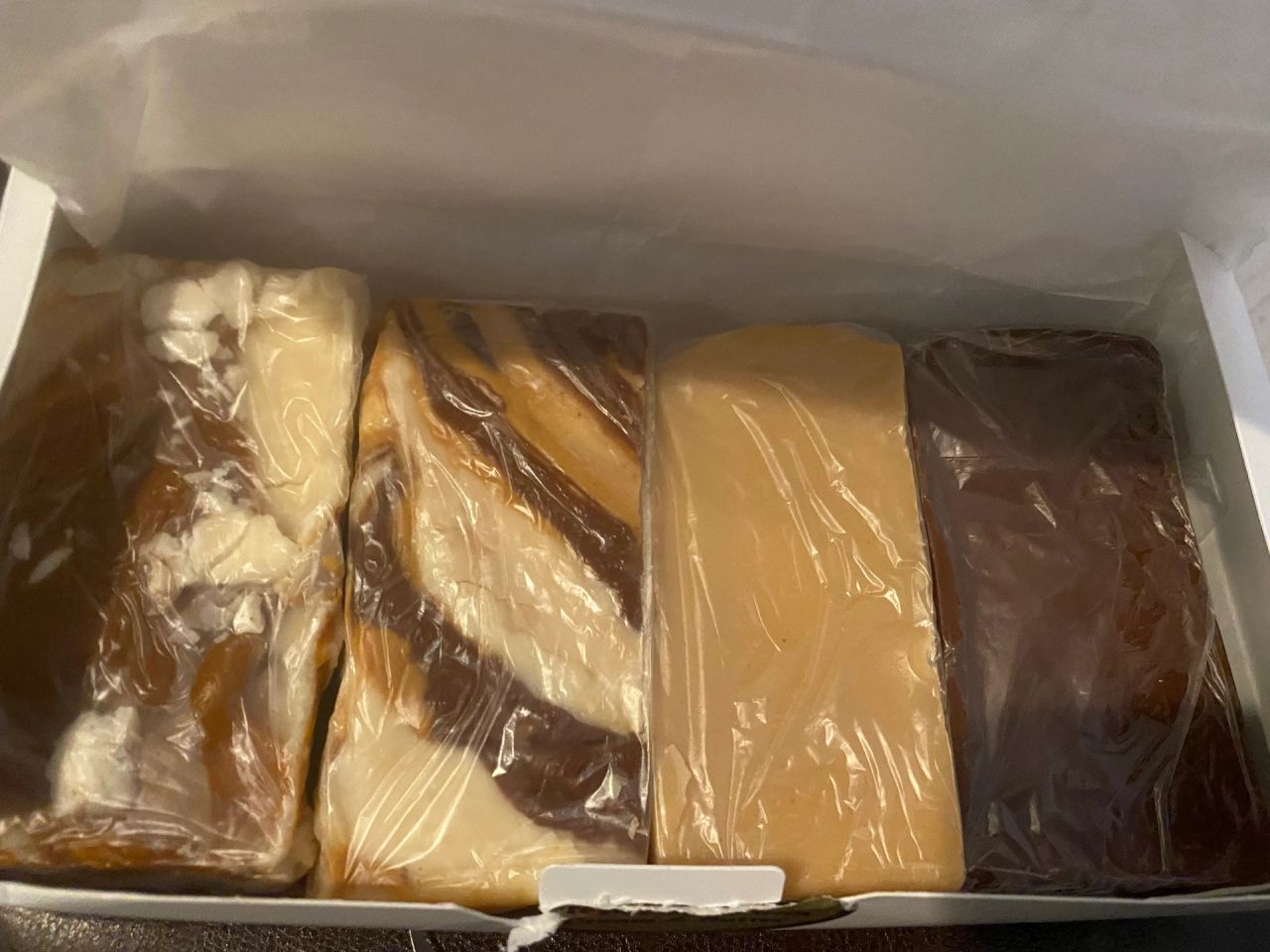 I love receiving gifts from local businesses . I love this theme. I usually request, a local gift from a sweat shop/bakery,.. I have great bakeries where I live. BUT, it’s nice to discover sweets from a different spot. MY gifter sent a Priority Mail box with FUDGE inside. I don’t indulge in Fudge too often . If I take a long ride to CapE May, Atlantic City, I sometimes buy a taste of it… BUT, it’s been a looooong time. So, it was a nice surprise , I got 4 different flavors… It was hard to tell apart the peanut butter fudge flavor, from the non PB flavors . They all had an essence of PB. The fudge was a perfect item @ size 2 share with my large group of coworkers ., I did receive this gift, super quick. Im late in posting to the gallery. THANK YOU very much for your thoughtfulness