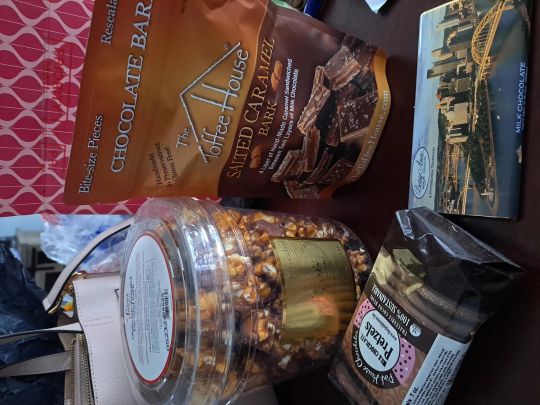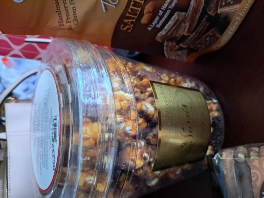 Thank you so much for the great selection of snacks. Everything looks so good!!! I already broke into the salted caramel bark it was delicious. Looking forward to trying all the other items. (sorry pictures sideways they are correct way until I post)