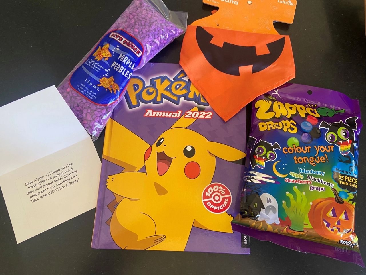 I mentioned my pets in my profile, and the doggos got a little Pumpkin Bandana and my Axolotl even got some new rocks!