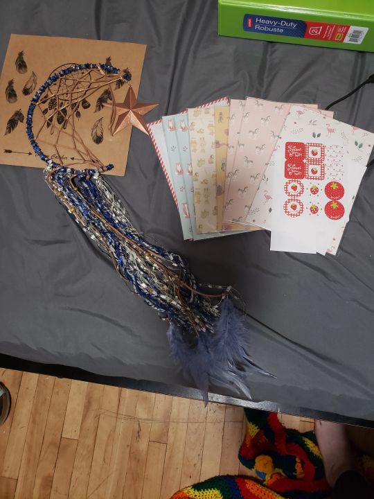 Thanks so much for this! The dream catcher is absolutely gorgeous, and it's so soft, I love it! And the stationary will be get used for sure. It's super cute, and I had run out of stationary (I was writing letters on plain lined paper - practical but boriiing!) so this is fantastic. Thank you so so much! This is a great first gift from this site, I'm really quite happy :))